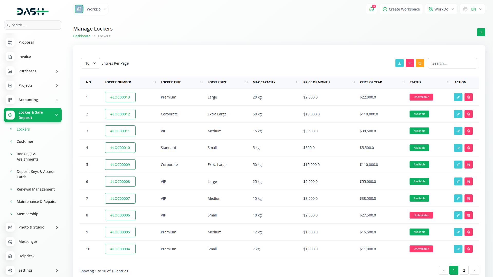 Locker & Safe Deposit keeps your important documents and assets protected within Workdo Dash.